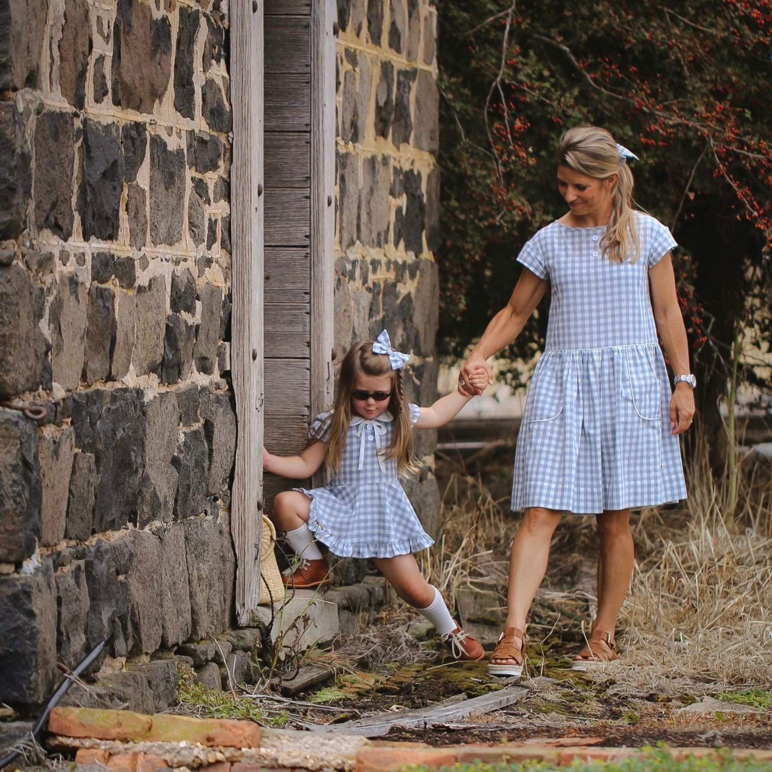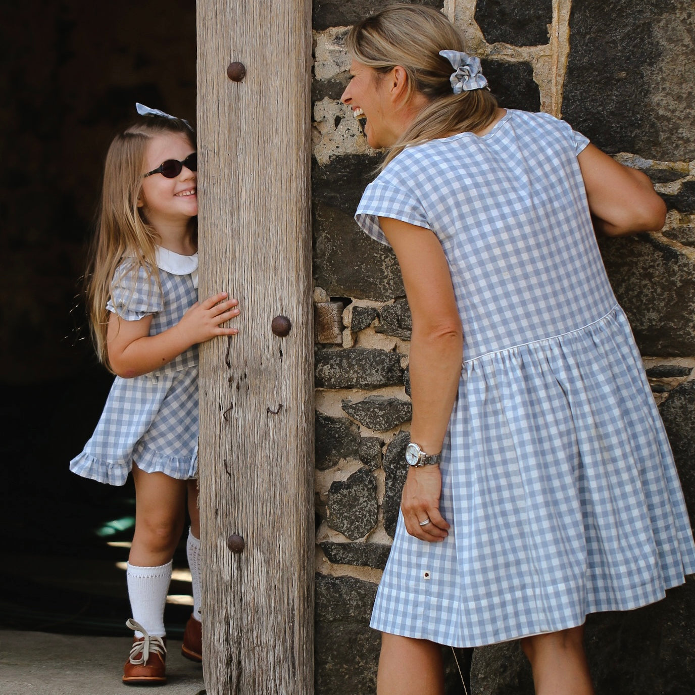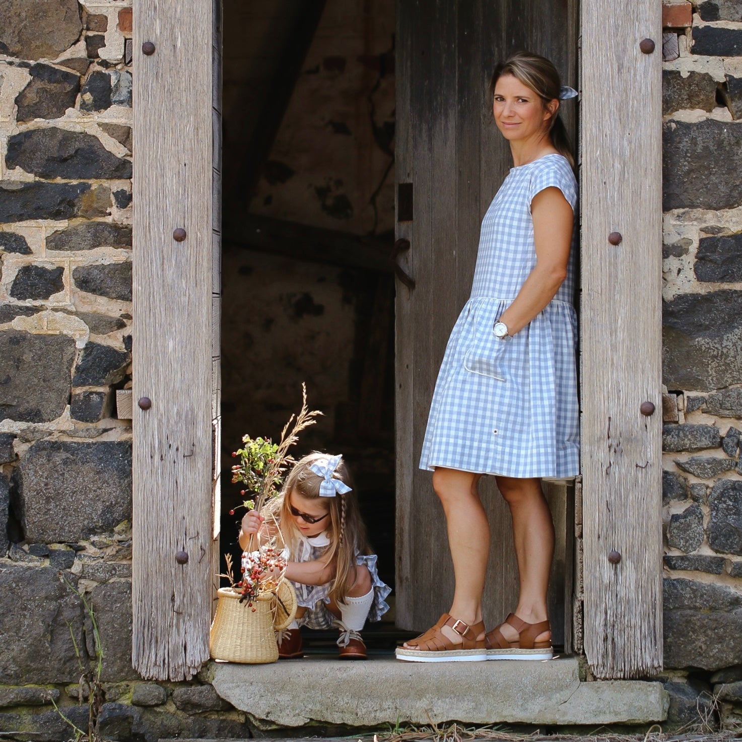 - Frost is yarn-dyed gingham pattern in a very soft stone-washed-cotton fabric. The dusty pale blue colour is so nice and versatile. This outfit works perfectly with white, navy, red, pale pink, caramel brown…. The possibilities are endless